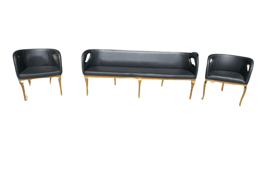 Black and Gold 3 Piece Furniture Set Price Break Down: 50$ per chair and 150$ for the couch. This set can be changed to fit your needs.